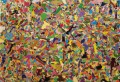 En regardant de vraiment près on constate qu’il s’agit d’une immense broderie. L’auteur en a tracé le dessin et lors d’un voyage au Pakistan en a confié la broderie à des femmes afghanes qui s’y étaient réfugiées après l’invasion soviétique. Un cartel du musée indique qu’il les a laissées libres de décider de la répartition des 84 couleurs, étant entendu que la quantité de fil disponible pour chacune d’elles est la même.