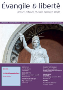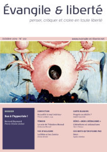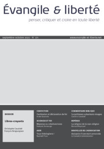 Index des numéros 371 | Septembre-Octobre 2023 Libres-croyants Vous devez avoir un abonnement actif pour télécharger le numéro 370 | Juillet-Août 2023 500 ans de la Réformation réformée Vous devez avoir un abonnement actif pour télécharger le numéro 369 | mai-Juin 2023 Les Synodes Vous devez avoir un abonnement actif pour télécharger le numéro 368 | Avril 2023 Le symbole de Pâques Vous devez avoir un abonnement actif pour télécharger le numéro 367 | Mars 2023 Faux plis sexistes dans la lecture de la Bible Vous devez avoir un abonnement actif pour télécharger le numéro 366 | Février 2023 La libre expression de la foi Vous devez avoir un abonnement actif pour télécharger le numéro 364-365 | Décembre22-Janvier23 La liberté en questions Vous devez avoir un abonnement actif pour télécharger le numéro 362-363 | Octobre-Novembre 2022 Protestantisme et Solidarité Vous devez avoir un abonnement actif pour télécharger le numéro 361 | Août-Septembre 2022 Protestantisme et modernité Vous devez avoir un abonnement actif pour télécharger le numéro 360 | Juin-juillet 2022 Friedrich Dürrenmatt Vous devez avoir un abonnement actif pour télécharger le numéro 359 | Mai 2022 À la recherche de Schleiermacher Vous devez avoir un abonnement actif pour télécharger le numéro 358 | Avril 2022 Religion, liberté, démocratie Vous devez avoir un abonnement actif pour télécharger le numéro 357 | Mars 2022 Paul Tillich Vous devez avoir un abonnement actif pour télécharger le numéro 356 | Février 2022 Dieu libre Vous devez avoir un abonnement actif pour télécharger le numéro 355 | Janvier 2022 Dieu transcendant et insoumis, selon Raphaël Picon Vous devez avoir un abonnement actif pour télécharger le numéro 354 | Décembre 2021 Qu’est-ce que l’homme ? Vous devez avoir un abonnement actif pour télécharger le numéro 353 | Novembre 2021 Liberté et technique Vous devez avoir un abonnement actif pour télécharger le numéro 352 | Octobre 2021 Le protestantisme libéral dans tous ses états Vous devez avoir un abonnement actif pour télécharger le numéro 351 | Août-Septembre La Bible à l’épreuve de la haine Vous devez avoir un abonnement actif pour télécharger le numéro 350 | Juin-Juillet 2021 Henry Thoreau : le monde d’après Vous devez avoir un abonnement actif pour télécharger le numéro 349 | Mai 2021 Diversité du christianisme Vous devez avoir un abonnement actif pour télécharger le numéro 348 | Avril 2021 La liberté de conscience Vous devez avoir un abonnement actif pour télécharger le numéro 347 | Mars 2021 Individu et communauté Vous devez avoir un abonnement actif pour télécharger le numéro 346 | Février 2021 Physique et théologie face au paradoxe Vous devez avoir un abonnement actif pour télécharger le numéro 345 | Janvier 2021 Albert Schweitzer Vous devez avoir un abonnement actif pour télécharger le numéro 344 | Décembre 2020 la Bible et ses langues Vous devez avoir un abonnement actif pour télécharger le numéro 343 | Novembre 2020 Religions et médias :entre fascination et répulsion Vous devez avoir un abonnement actif pour télécharger le numéro 342 | Octobre 2020 Dissensions sur les sacrements Zwingli, Luther, Calvin : accords et désaccords Vous devez avoir un abonnement actif pour télécharger le numéro 341 | Août-Septembre 2020 Lessing, la vérité « là où le peuple ne l'attend pas » Vous devez avoir un abonnement actif pour télécharger le numéro 340 | Juin-Juillet 2020 Le dialogue interreligieux Vous devez avoir un abonnement actif pour télécharger le numéro 339 | Mai 2020 L’universalisme en question Vous devez avoir un abonnement actif pour télécharger le numéro 338 | Avril 338 Le travail Vous devez avoir un abonnement actif pour télécharger le numéro 337 | Mars 2020 Le toupet théologique Vous devez avoir un abonnement actif pour télécharger le numéro 336 | Février 2020 Dies Iræ Vous devez avoir un abonnement actif pour télécharger le numéro 335 | Janvier 2020 Mon espérance est dans la grâce de Dieu Vous devez avoir un abonnement actif pour télécharger le numéro 334 | Décembre 2019 Que veut dire être sauvé aujourd’hui ? Vous devez avoir un abonnement actif pour télécharger le numéro 333 | Novembre 2019 Bible et archéologie Vous devez avoir un abonnement actif pour télécharger le numéro 332 | Octobre 2019 Sus à l’hypocrisie ! Vous devez avoir un abonnement actif pour télécharger le numéro 331 | Août-Septembre 2019 Les chrétiens, l’Église et l’État selon Luther Vous devez avoir un abonnement actif pour télécharger le numéro 330 | Juin-Juillet 2019 Les femmes au tombeau Vous devez avoir un abonnement actif pour télécharger le numéro 329 | Mai 2019 L'Europe Vous devez avoir un abonnement actif pour télécharger le numéro 328 | Avril 2019 Huldrych Zwingli Vous devez avoir un abonnement actif pour télécharger le numéro 327 | Mars 2019 Théologie du Process Vous devez avoir un abonnement actif pour télécharger le numéro 326 | Février 2019 Église et État Vous devez avoir un abonnement actif pour télécharger le numéro 325 | Janvier 2019 Le libéralisme Vous devez avoir un abonnement actif pour télécharger le numéro 324 | Décembre 2018 Friedrich D. E. Schleiermacher Vous devez avoir un abonnement actif pour télécharger le numéro 323 | Novembre 2018 L’armistice et la paix Vous devez avoir un abonnement actif pour télécharger le numéro 322 | Octobre 2018 Penser la mort Vous devez avoir un abonnement actif pour télécharger le numéro 321 | Août-septembre 2018 Jean-Jacques Rousseau Vous devez avoir un abonnement actif pour télécharger le numéro 320 | Juin-Juillet 2018 Assistance médicale à la procréation et homoparentalité Vous devez avoir un abonnement actif pour télécharger le numéro 319 | Mai 2018 Sortir de la crise djihadiste Vous devez avoir un abonnement actif pour télécharger le numéro 318 | Avri