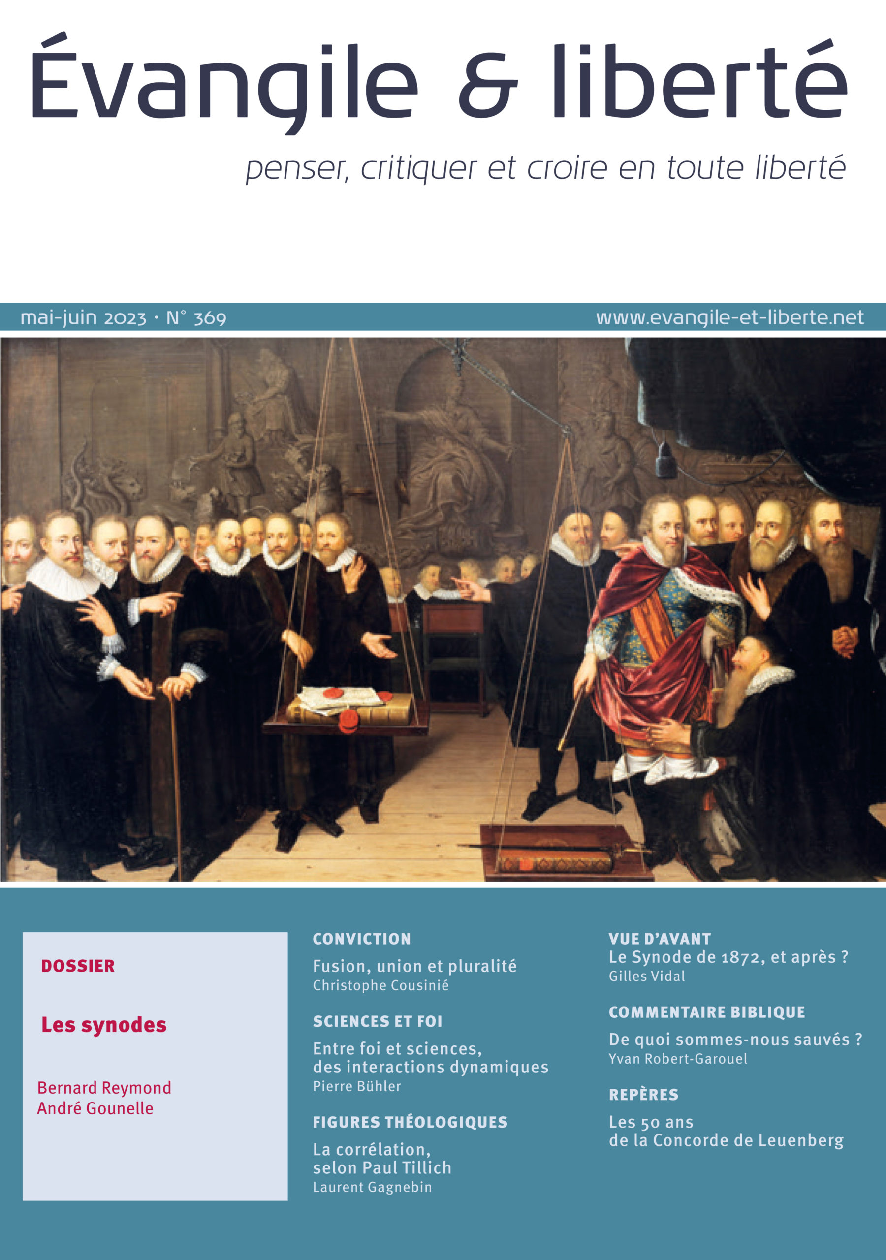 Présenté comme un échec ecclésiastique, le Synode de 1872 qui devait être celui d’une réunification des Réformés français a au contraire signifié la désunion entre orthodoxes et libéraux. Mais ce Synode n’en représente pas moins une étape fondamentale dans la construction d’une pluralité théologique française. Dans le cadre de cette construction, on peut signaler, parmi bien d’autres, le rôle qu’un christianisme pratique et social a joué en dépassant des antagonismes et cela dans une perspective œcuménique et universelle.